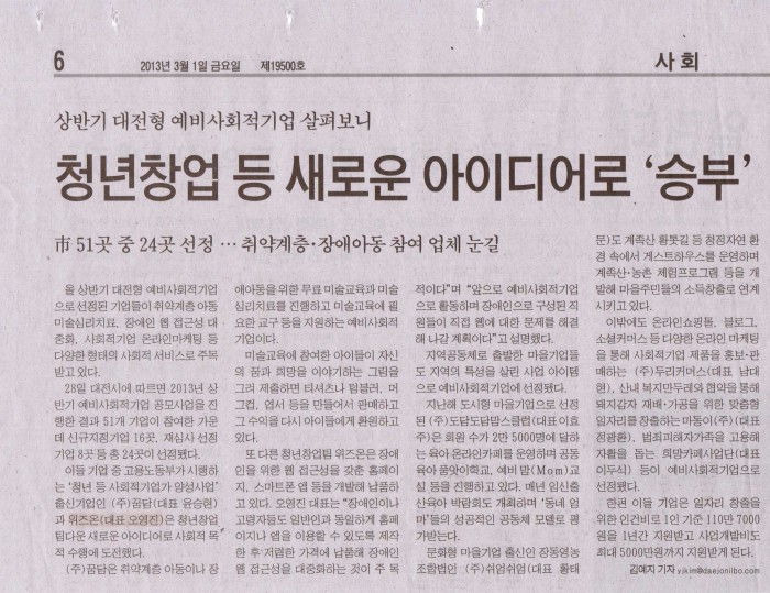 대전일보_130301_상반기 대전형 예비사회적기업 살펴보니