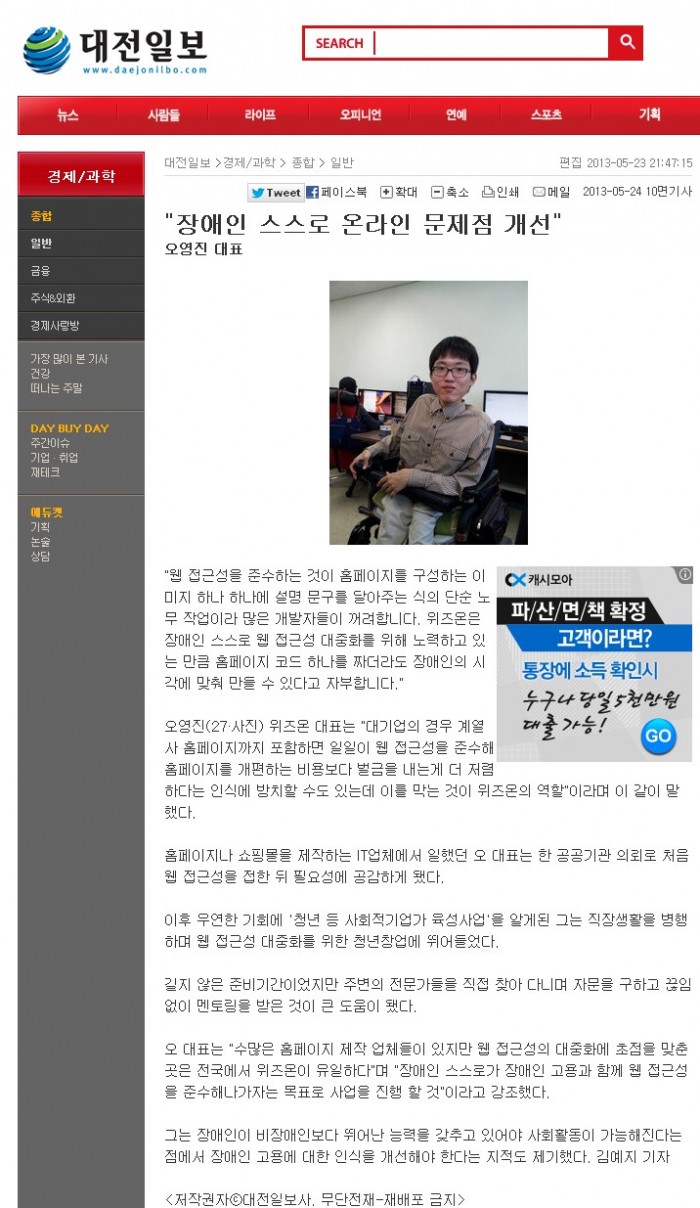 대전일보_130524_장애인 스스로 온라인 문제점 개선