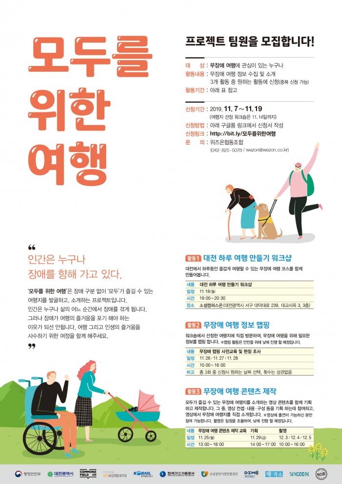 대전사회혁신플랫폼의 실행의제 중 하나인 "무장애 여행 만들기 (모두를 위한 여행)"를 진행합니다.