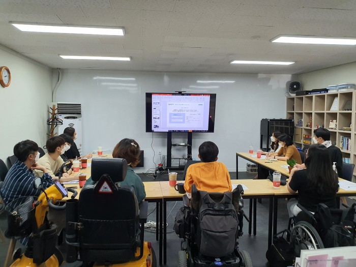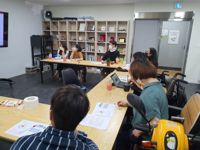 <배리어프리 1차 간단회> 주 제 : 편의시설 온라인 서비스 고도화를 위한 피드백 내 용 : - 고도화 및 활동 안내 (APP 개발, 매뉴얼 제작, 교육 프로그램) - APP 개발 및 매뉴얼 계획 피드백 - 협업 및 활성화 방안 논의 (교육 프로그램 운영, 홍보, 자금 등) 일 시 : 2021. 07. 27. (화) 오후 2시~4시 장 소 : 대전 중구 중앙로 124, 2층 위즈온협동조합
