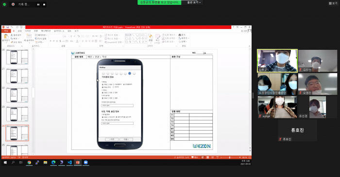<배리어프리 2차 간단회> 주 제 : - 올려드린 스토리보드 점검 및 피드백 - 서비스명 논의 내 용 : - 서비스명에 대한 확정 - 개발문서 검토 및 피드백 - 기타 등 일 시 : 2021. 09. 03(금) 오후 3시~5시